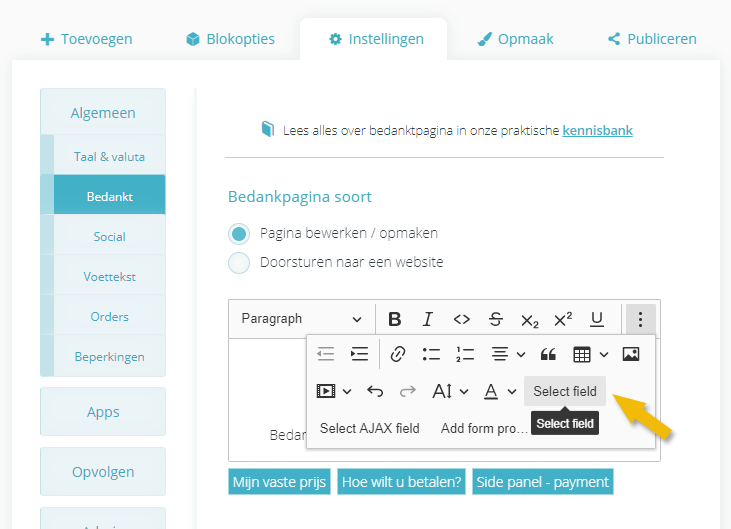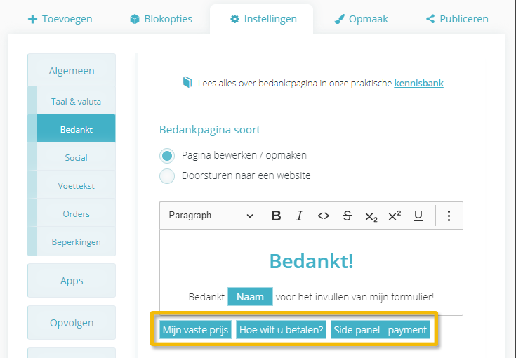 Alle informatie omtrent bedankpagina, funnels en automatisch opvolgen.